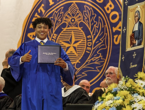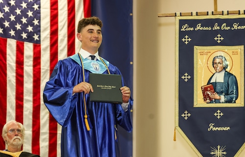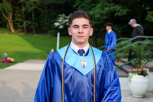 Salutatorian Anthony Macaluso thanked Senior Guidance Director, Frank Cafaro for the countless early mornings and late nights spent helping the students, and for extending kindness that truly made a difference. He also remarked on the sense of family and brotherhood formed during his four years at St. Peter’s. “Being part of sports was not only about playing on the field or court. It was also about being there for one another, like being a part of the 12th man at a football game or sixth man cheering court side at a basketball game. We were always there because we care about one another.”