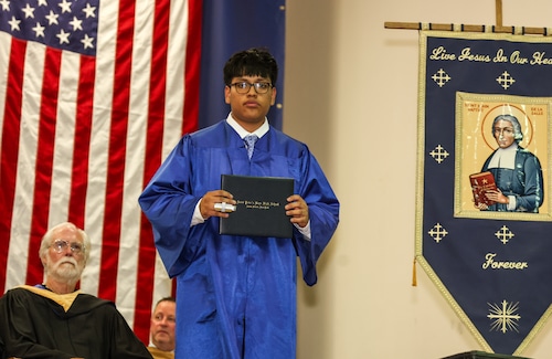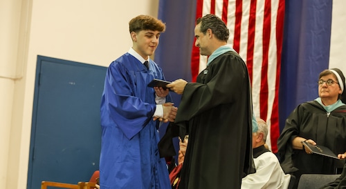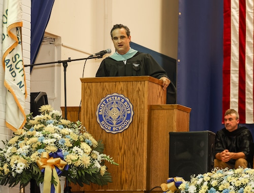 Principal Michael Cosentino reminded the graduates of the words of author, poet and activist Maya Angelou: “I have learned that people will forget what you said, people will forget what you did, but people will never forget how you made them feel." He reminded the graduates to go forth and remember their brothers.