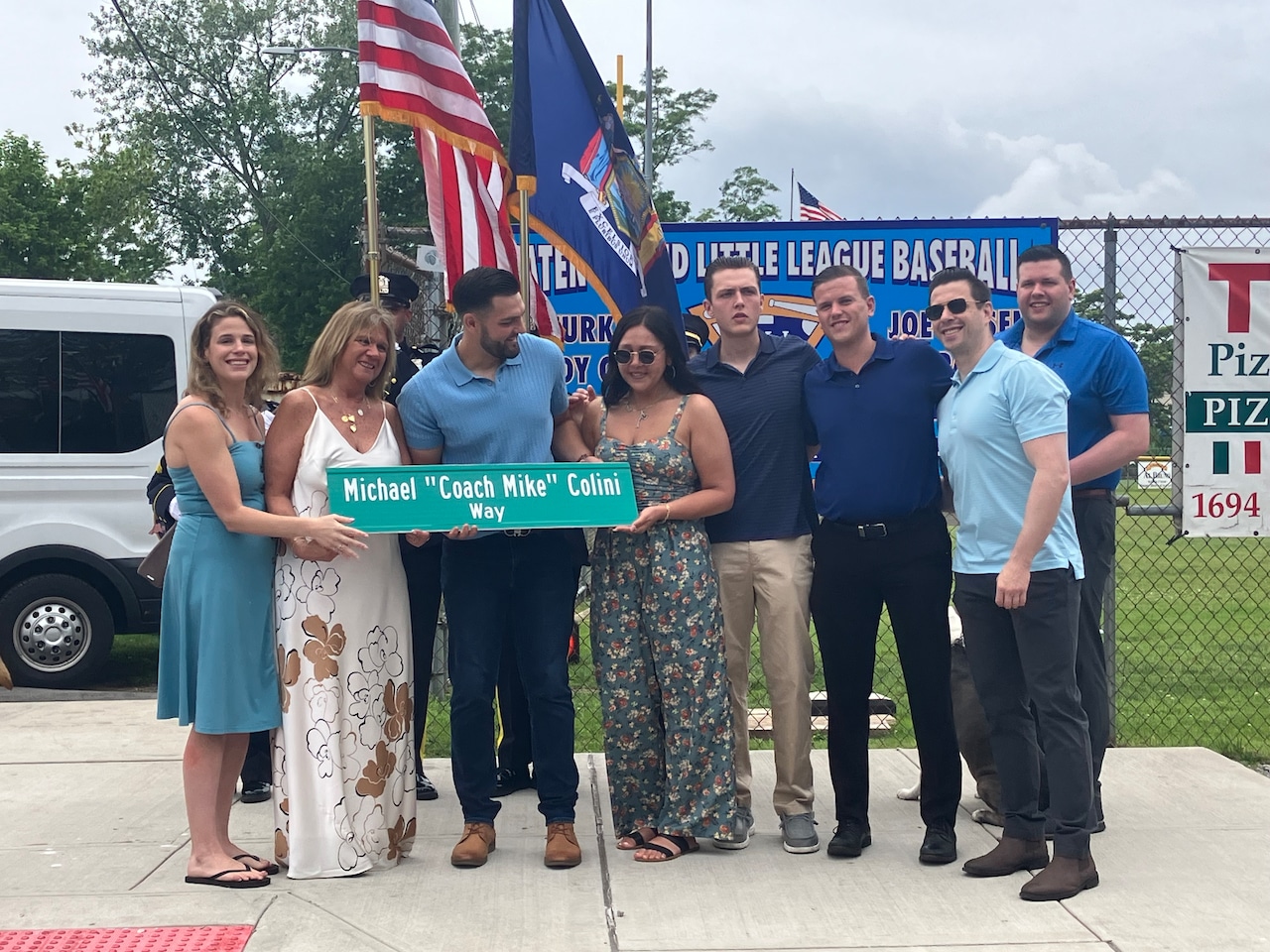 STATEN ISLAND, N.Y. — Diane Colini was at the tail end of an emotional tribute to late husband Mike Colini when she alluded to why Staten Island Little League was the perfect place for his street naming.