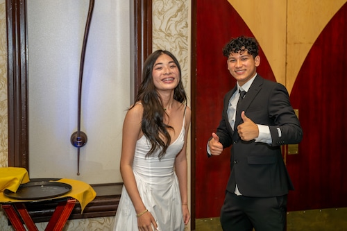 Karen Soriano and Sean Richardson arrive for the Gaynor McCown Expeditionary Learning School prom at the Hilton Garden Inn on Wednesday, June 4, 2025, in Bloomfield.Owen Reiter
