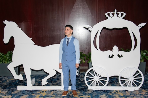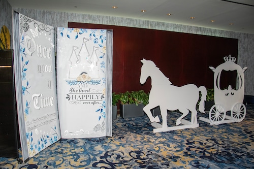 Students began to arrive at 5 PM, and were greeted with impressive backdrops. The lobby was full of Cinderella themed photo ops, including a horse and carriage and a life-size storybook.