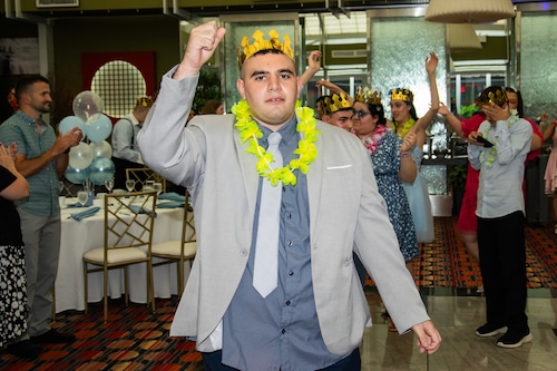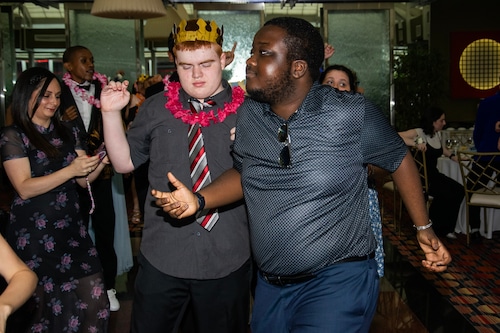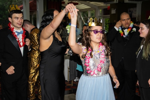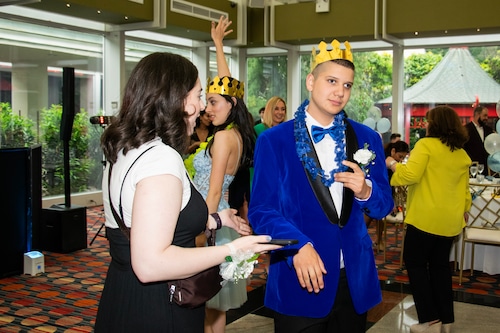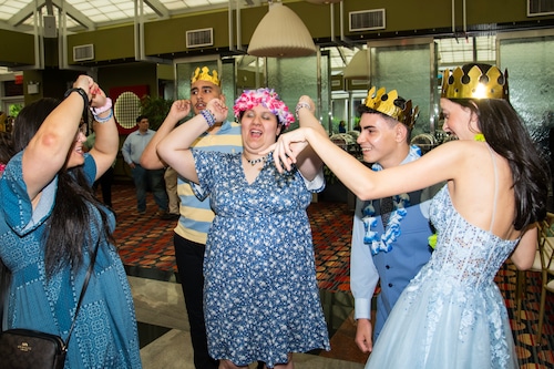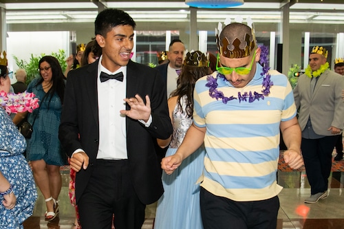 STATEN ISLAND, N.Y. — Great Kills High School held its prom Friday night at the Hilton Garden Inn in Bloomfield. DJ Tyler B kept the energy up with line dances and props, such as crowns, leis, and LED sunglasses.