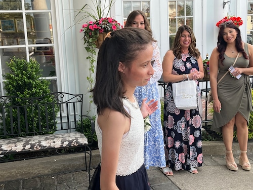 Kaitlyn Mckinzie's lavender dress was perfectly matched with flowers, manicure and white sandals. (Advance/SILive.com | Pamela Silvestri)