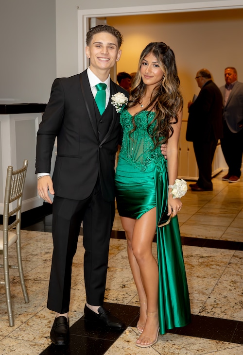 Mylee Maldonado and Josh Silva look sharp outside of the St. Peter's Boys High School junior prom held at Li Greci's Staaten in West Brighton on Thursday, May 22, 2025. (Advance/SILive.com | Jason Paderon)(Advance/SILive.com | Jason Paderon)