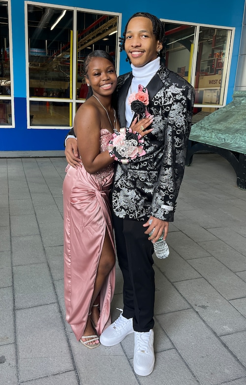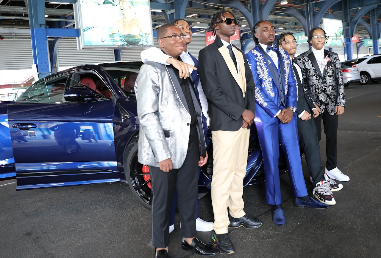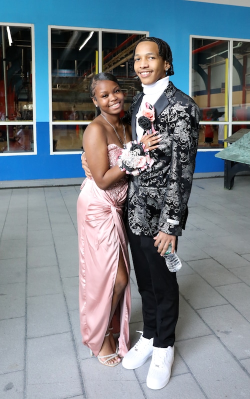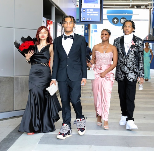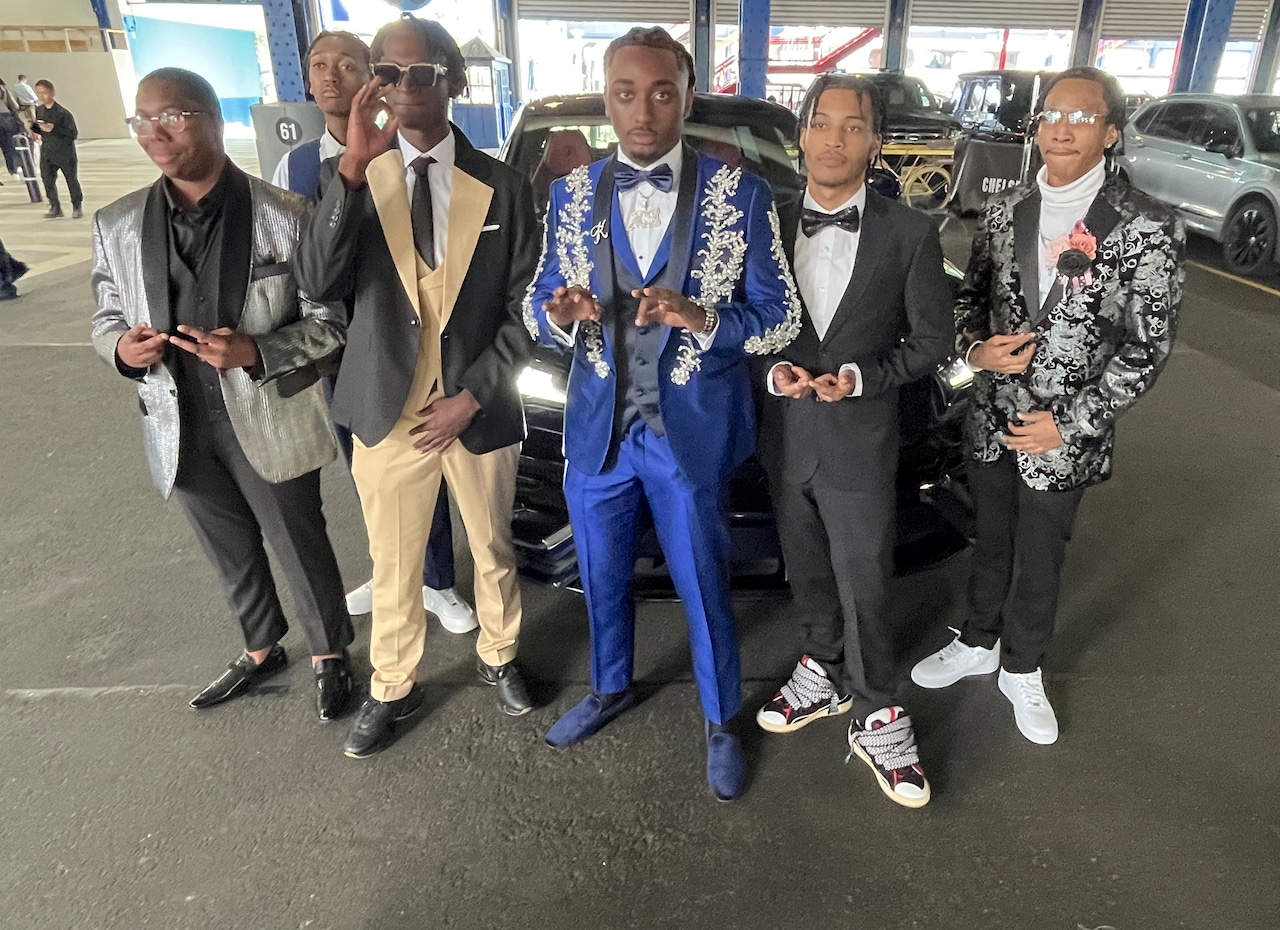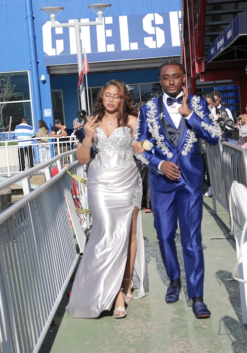 Lanvin sneakers made the best-dressed list, as worn by Xiomar Menendez and his date Gabriella Cruz, who carried a stunning bouquet of red roses. They were seen boarding the Spirit of New Jersey at Chelsea Piers in NYC for the Eagle Academy for Young Men of Staten Island prom on Wednesday, June 4, 2025. (Advance/SILive.com | Jan Somma-Hammel)Staten Island Advance